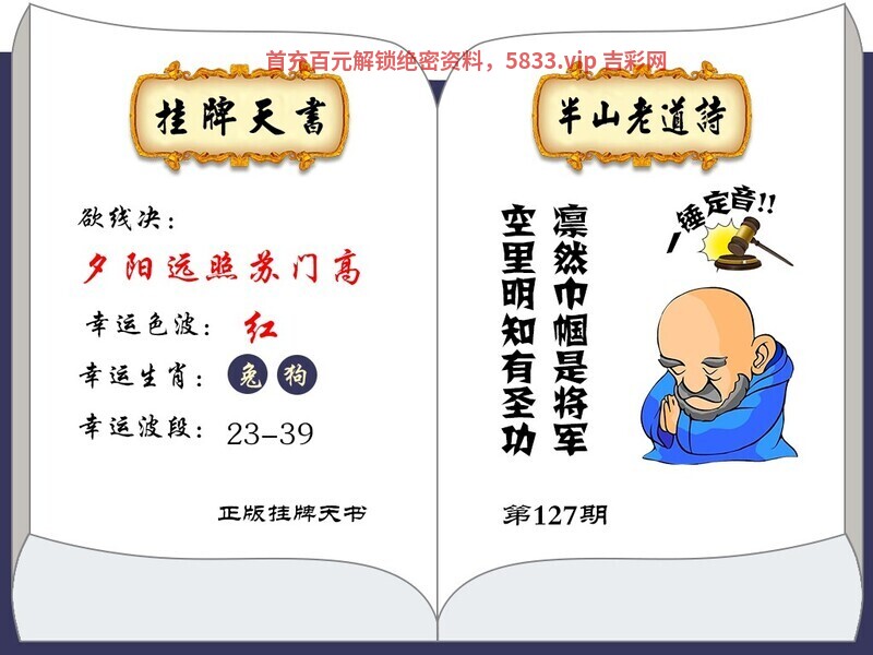 127期:黄大仙【正版挂牌天书】